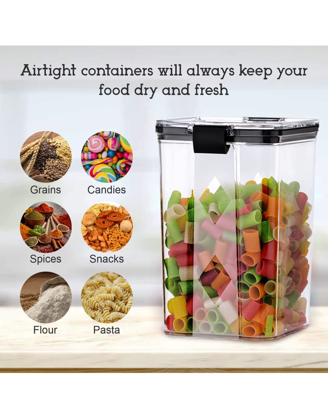 Ideal for storing rice, pulses, snacks, leftovers, and lunch portions. Its transparent, stackable design makes it easy to organize your kitchen or pantry.